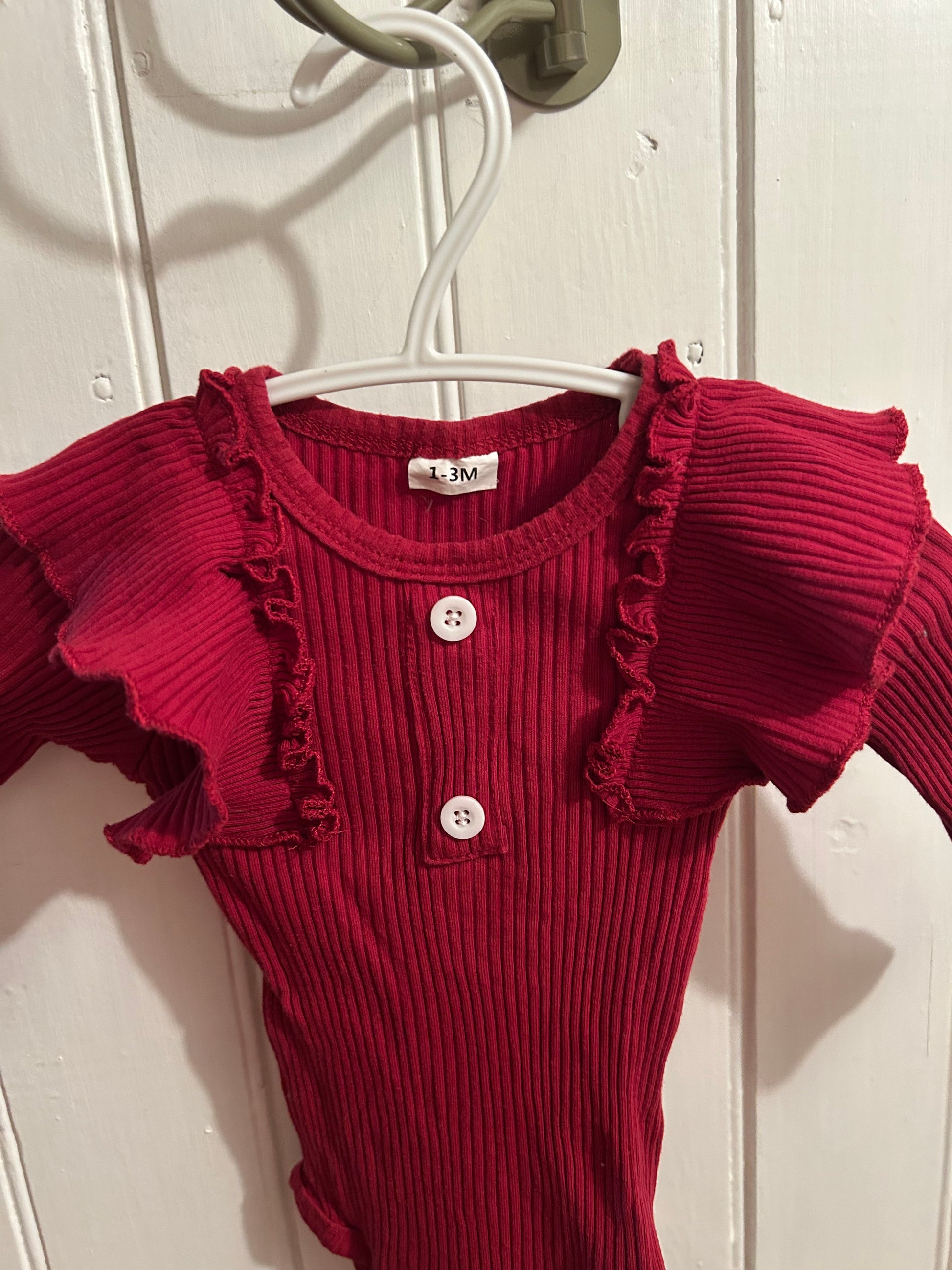 No brand. Long sleeve ruffle onesie. Red ribbed. Size 1/3m. Brand new conditionÂ