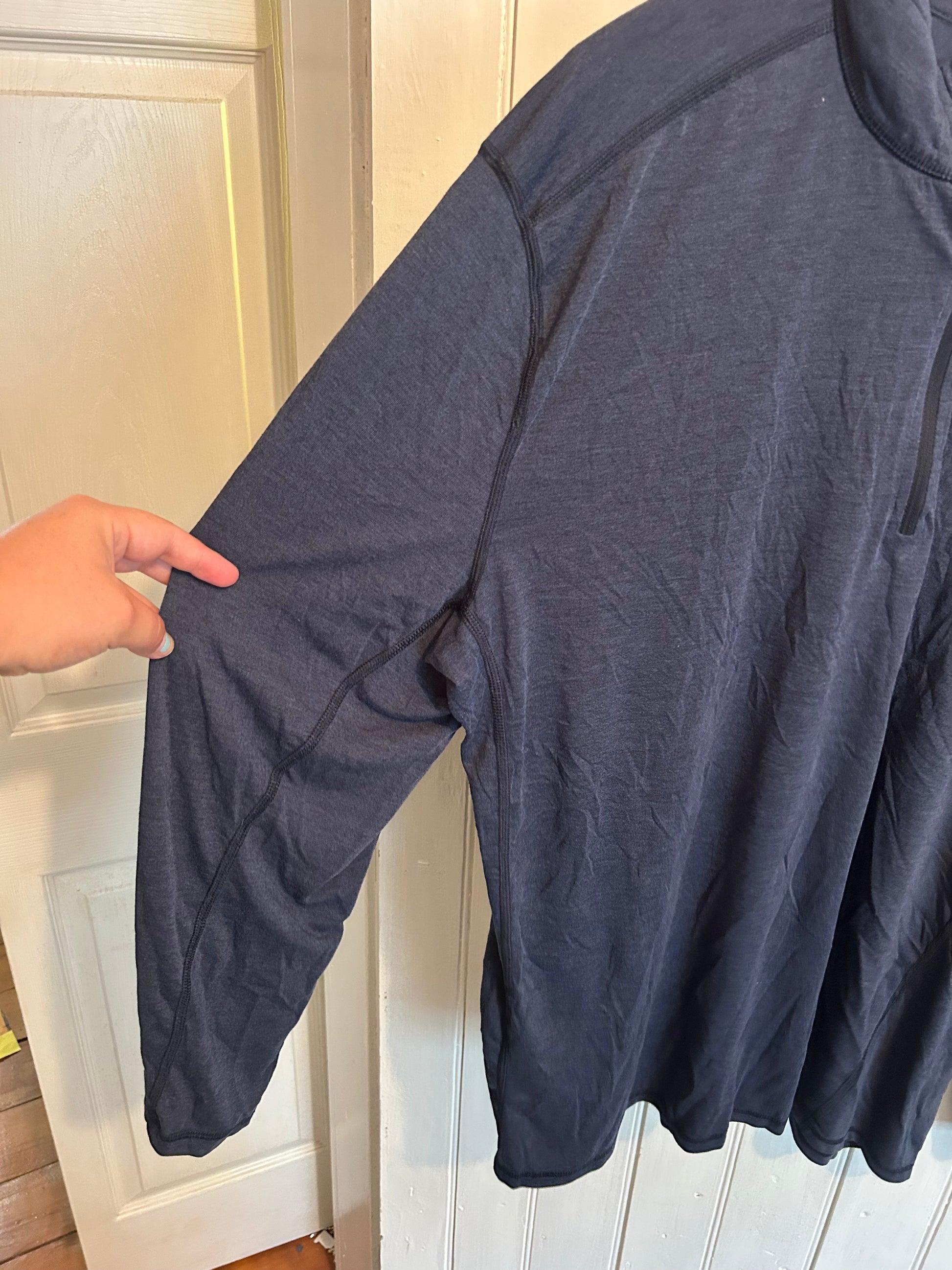 Carhartt brand. Long sleeve quarter zip shirt, not a sweater material. Navy blue in colour. Size men’s 2x. Brand new condition