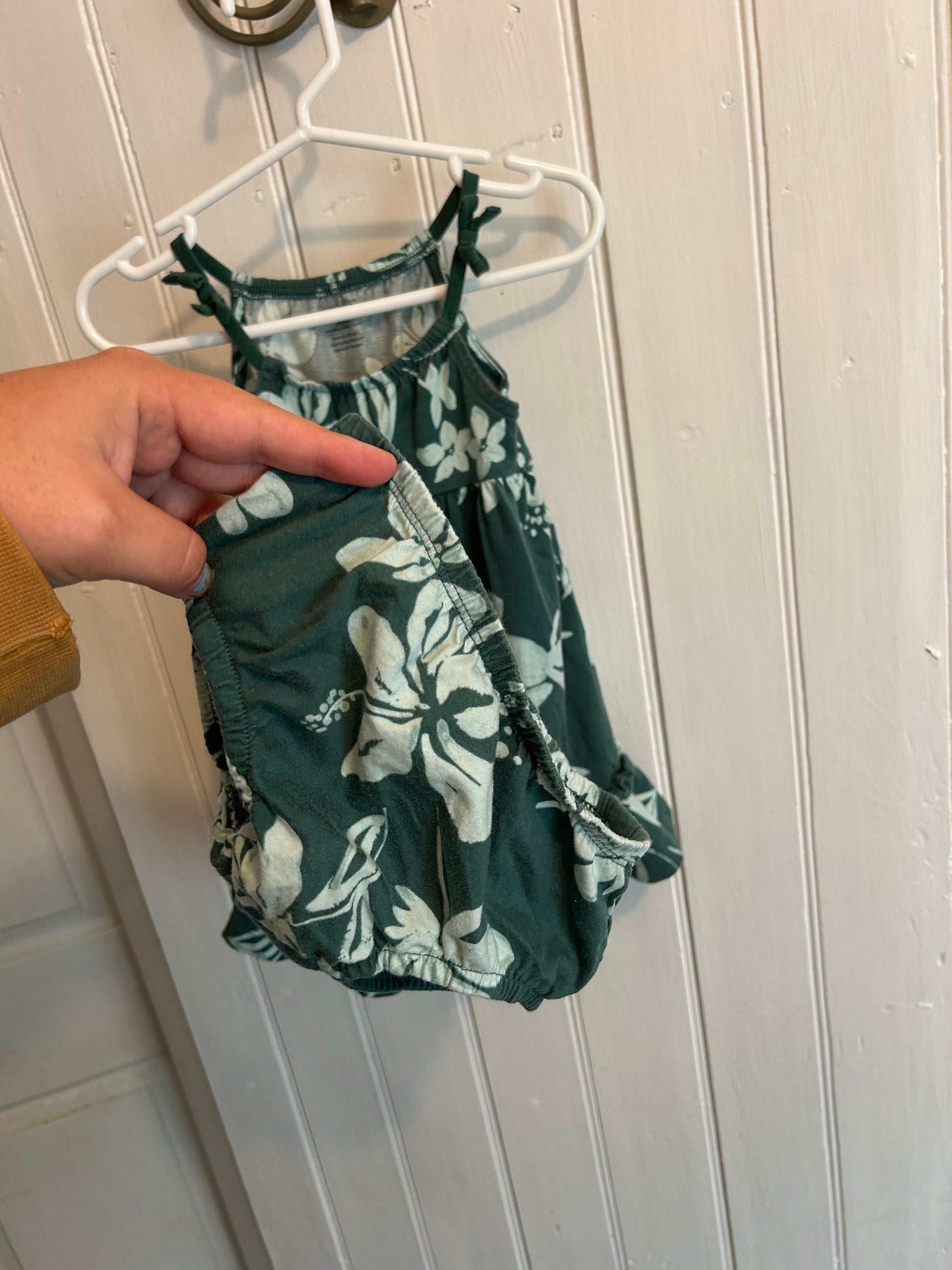 Carters brand. Spaghetti strap dress with matching bunnies. Green floral. Size 18m. Brand new conditionÂ