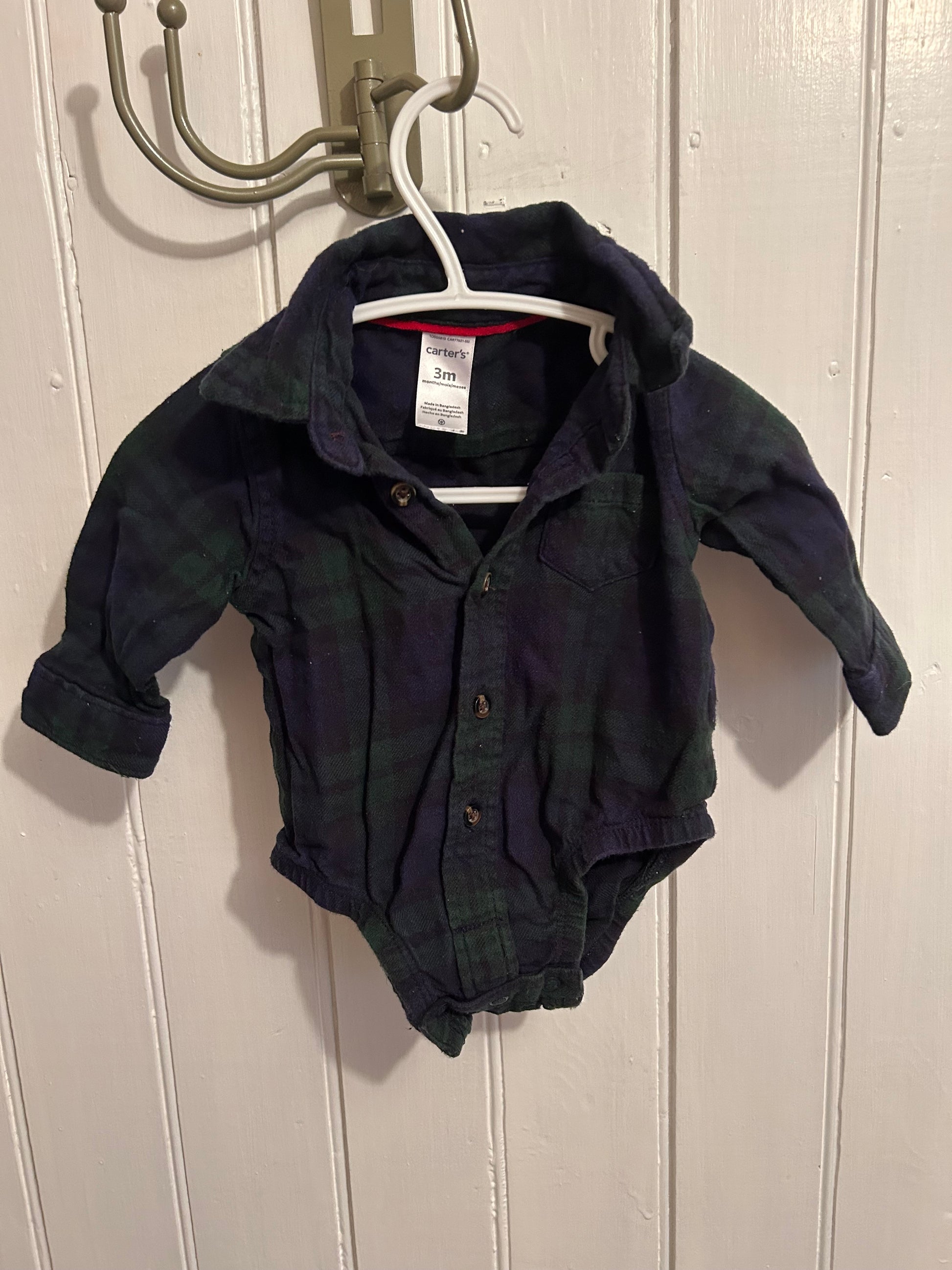 Carters brand. Long sleeve button up flannel onesie. Green & blue plaid. Size 3m. Brand new conditionÂ