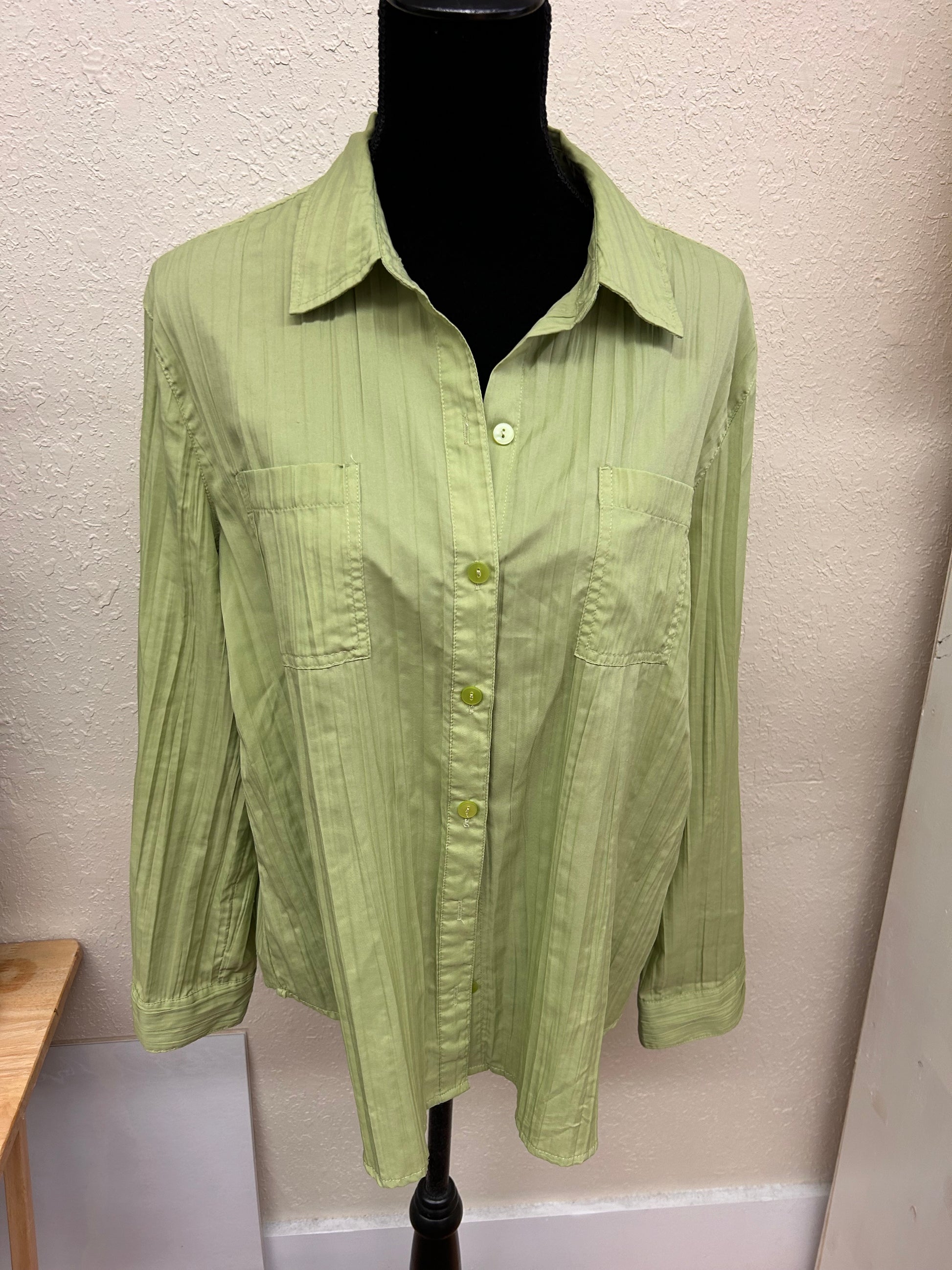 Chicos brand. Long sleeve button up shirt. Green in colour. Size 3x. Brand new condition