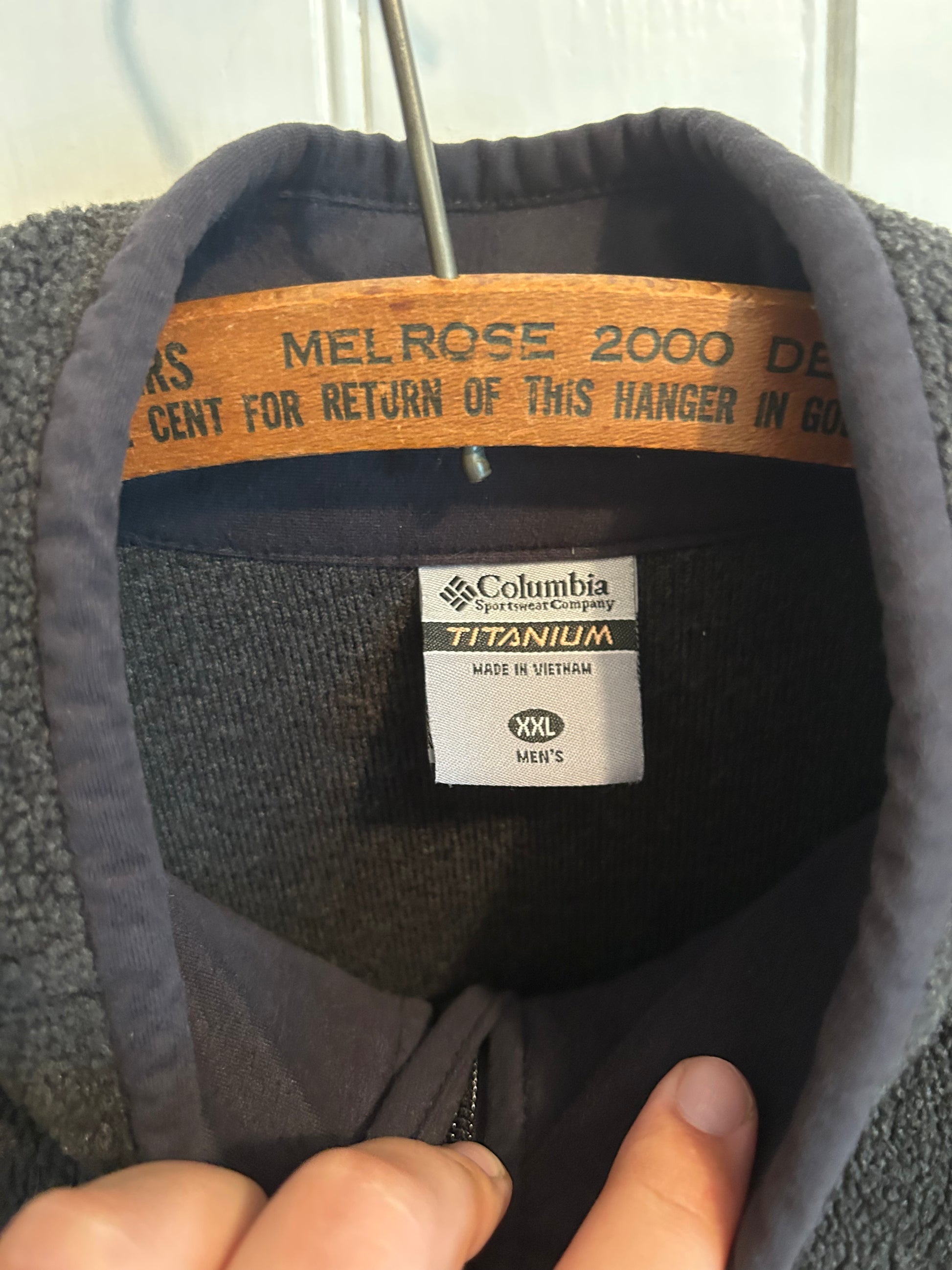 Columbia brand. Fleece zip up sweater. Thumb holes & lots of pockets. Grey in colour. Size men’s Xxl. Brand new condition