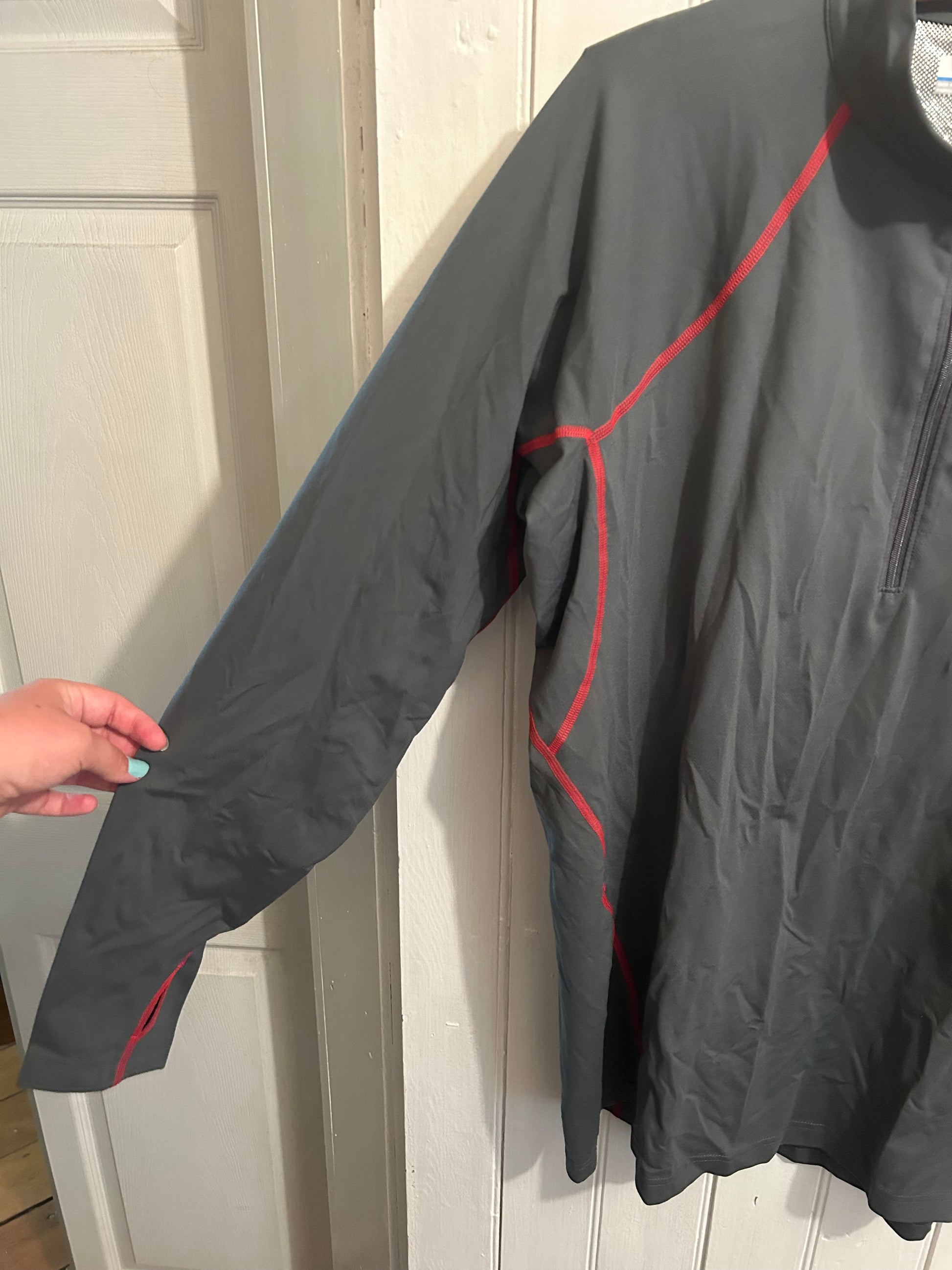 Columbia brand. Quarter zip pullover athletic sweater. Lightweight. Omni Heat. Grey with pinkish-red stitching. Size women’s Xxl. Brand new condition
