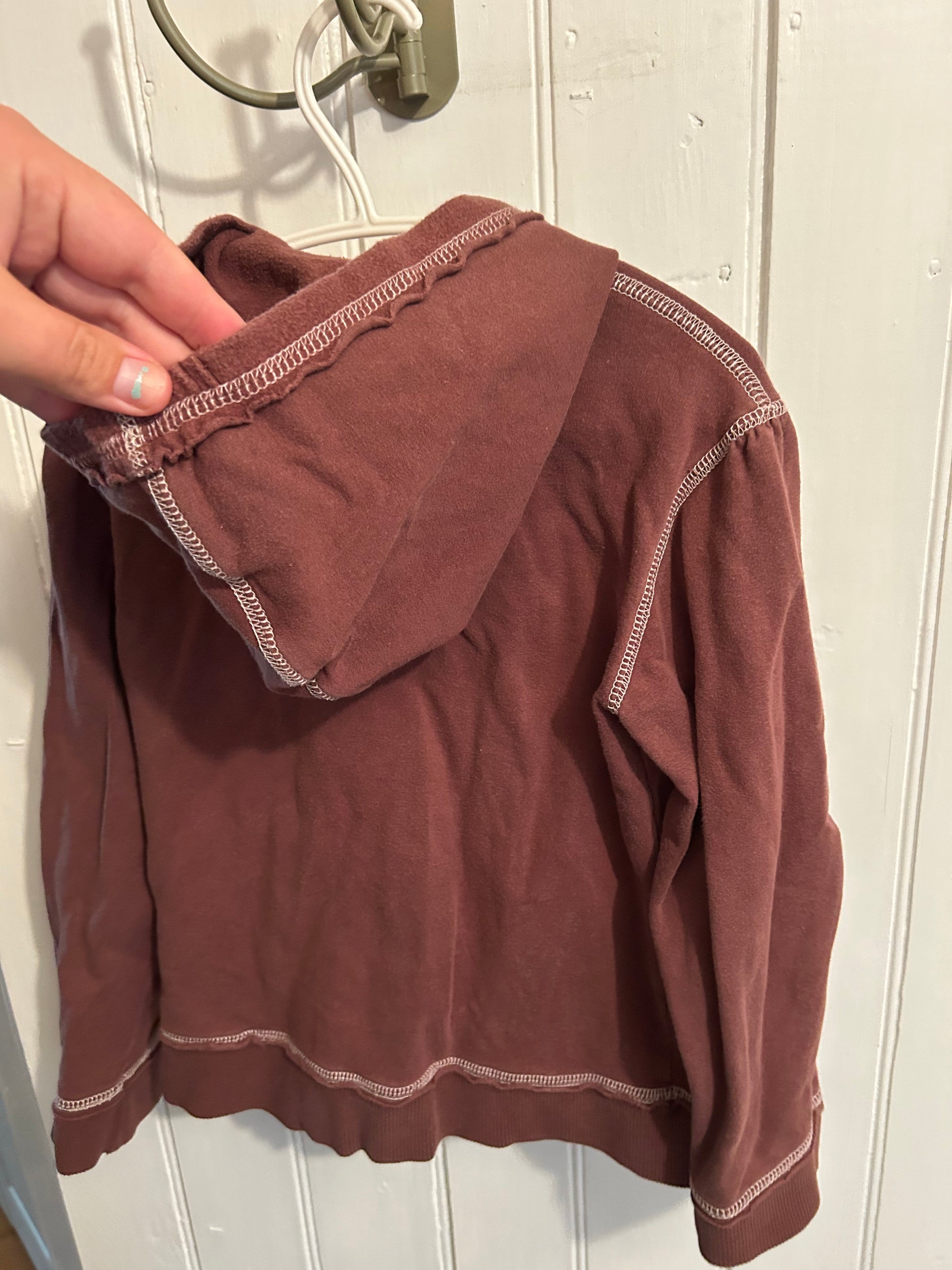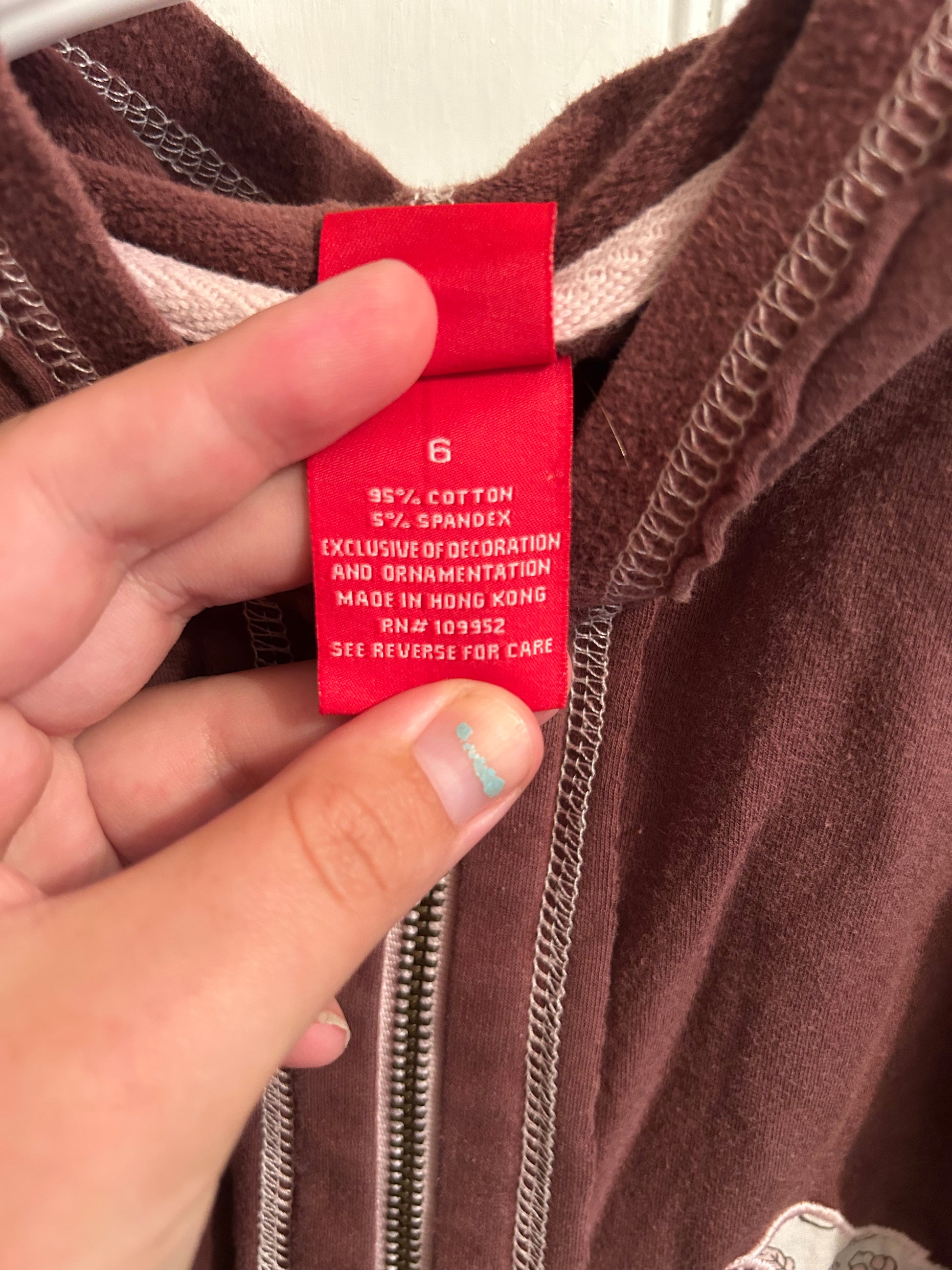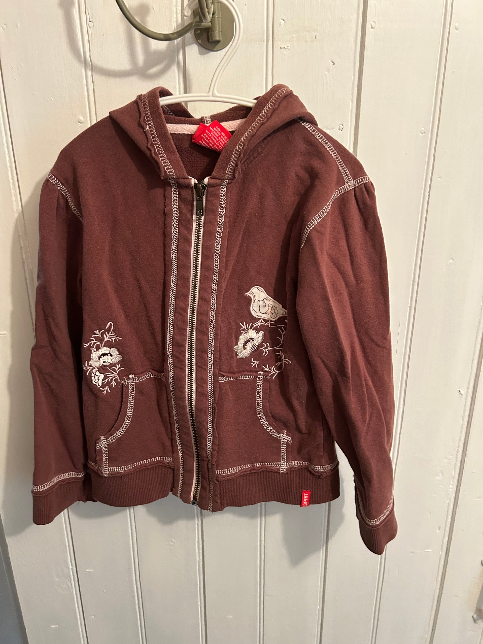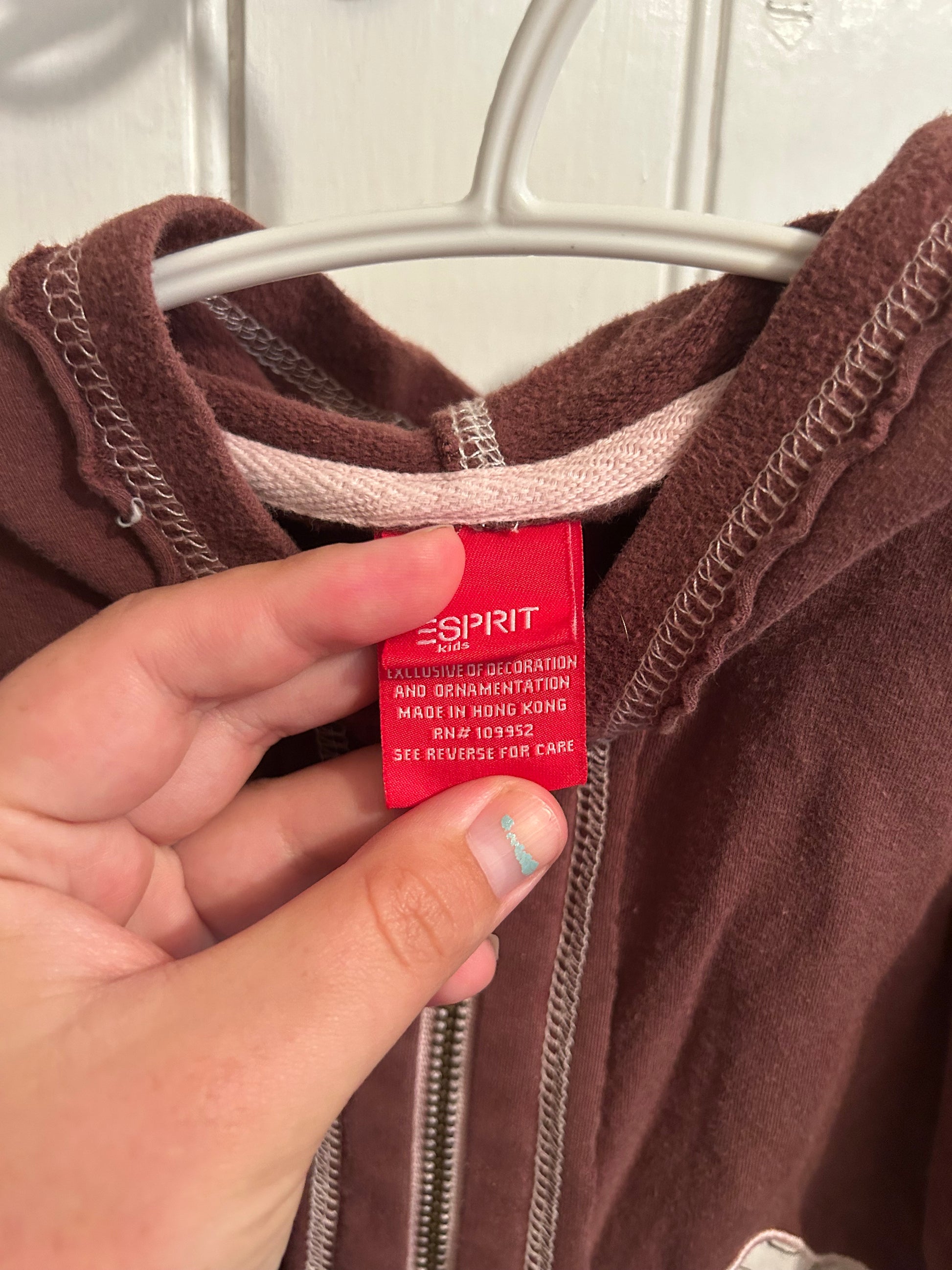 Esprit brand. 2pc matching lounge set of zip up hooded shirt and wide leg pants. Brown with floral bird accents. Size girls 6. Brand new conditionÂ