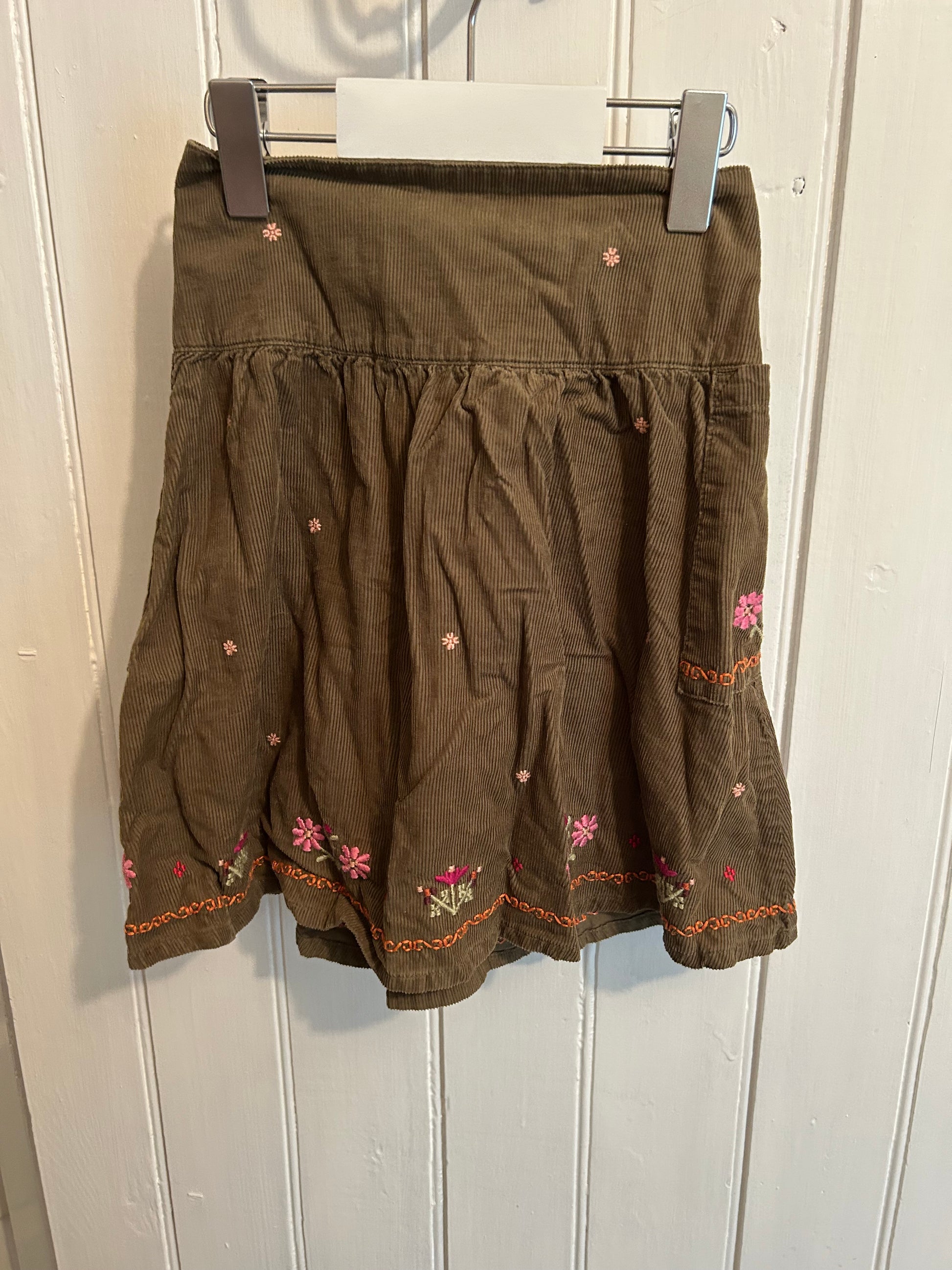 Gymboree 6 green corduroy floral embroidered skirt