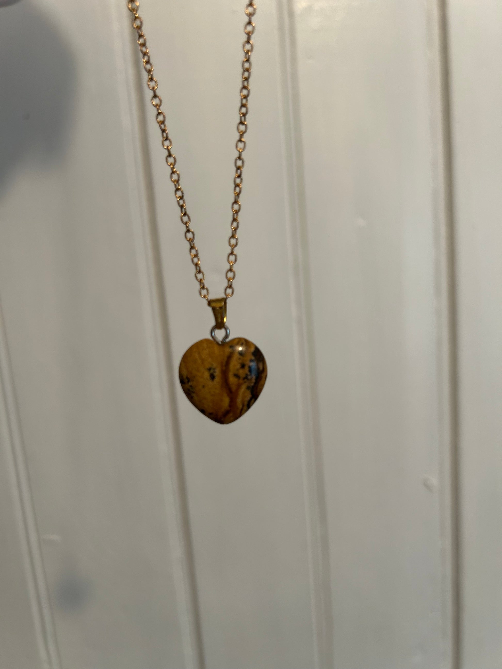 Handmade by local small shop, Kitty r designs. Brown heart gemstone pendant necklace. Brand new