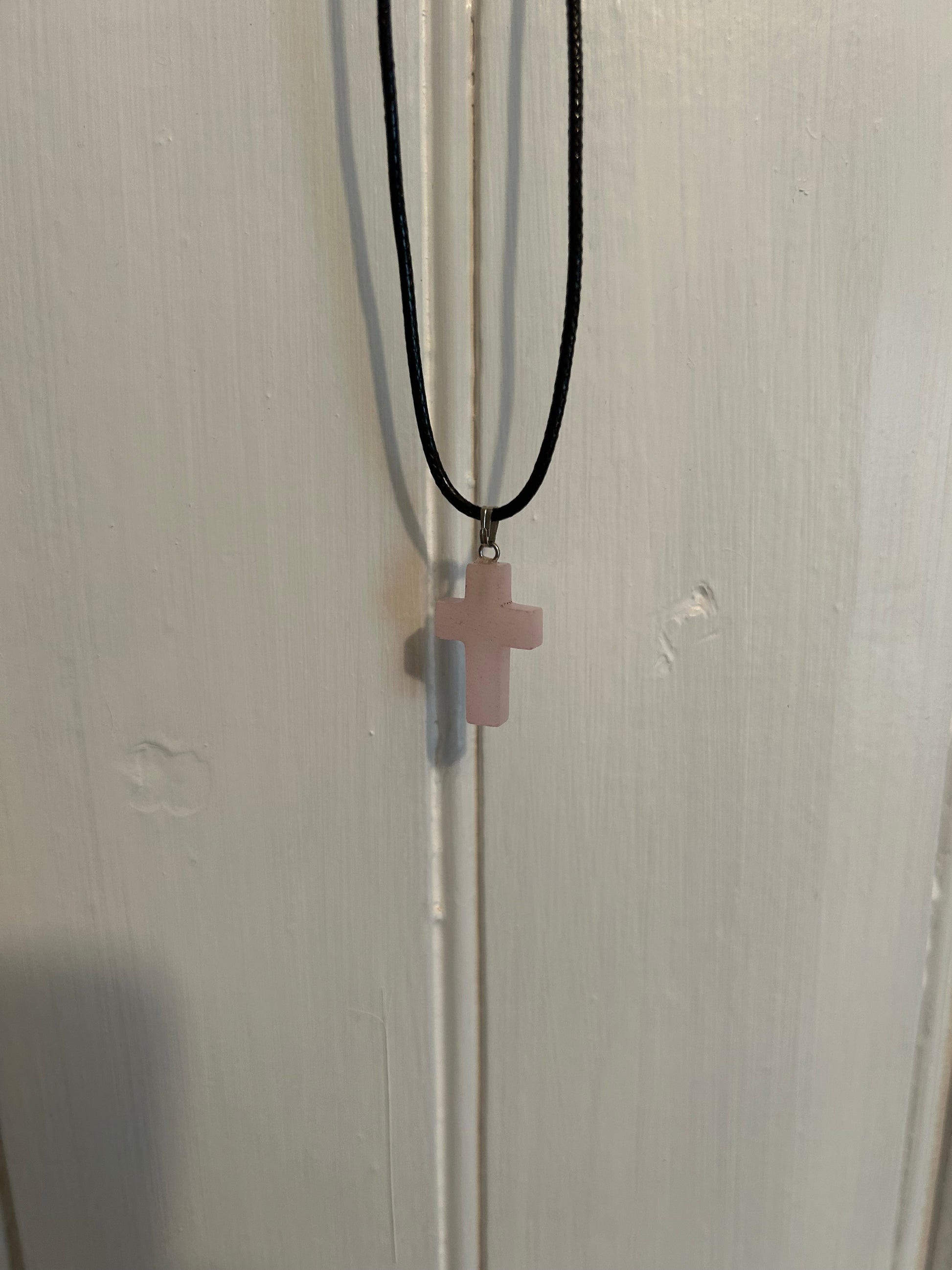 Handmade by local small shop, Kitty r designs. Pink cross gemstone pendant necklace. Brand new