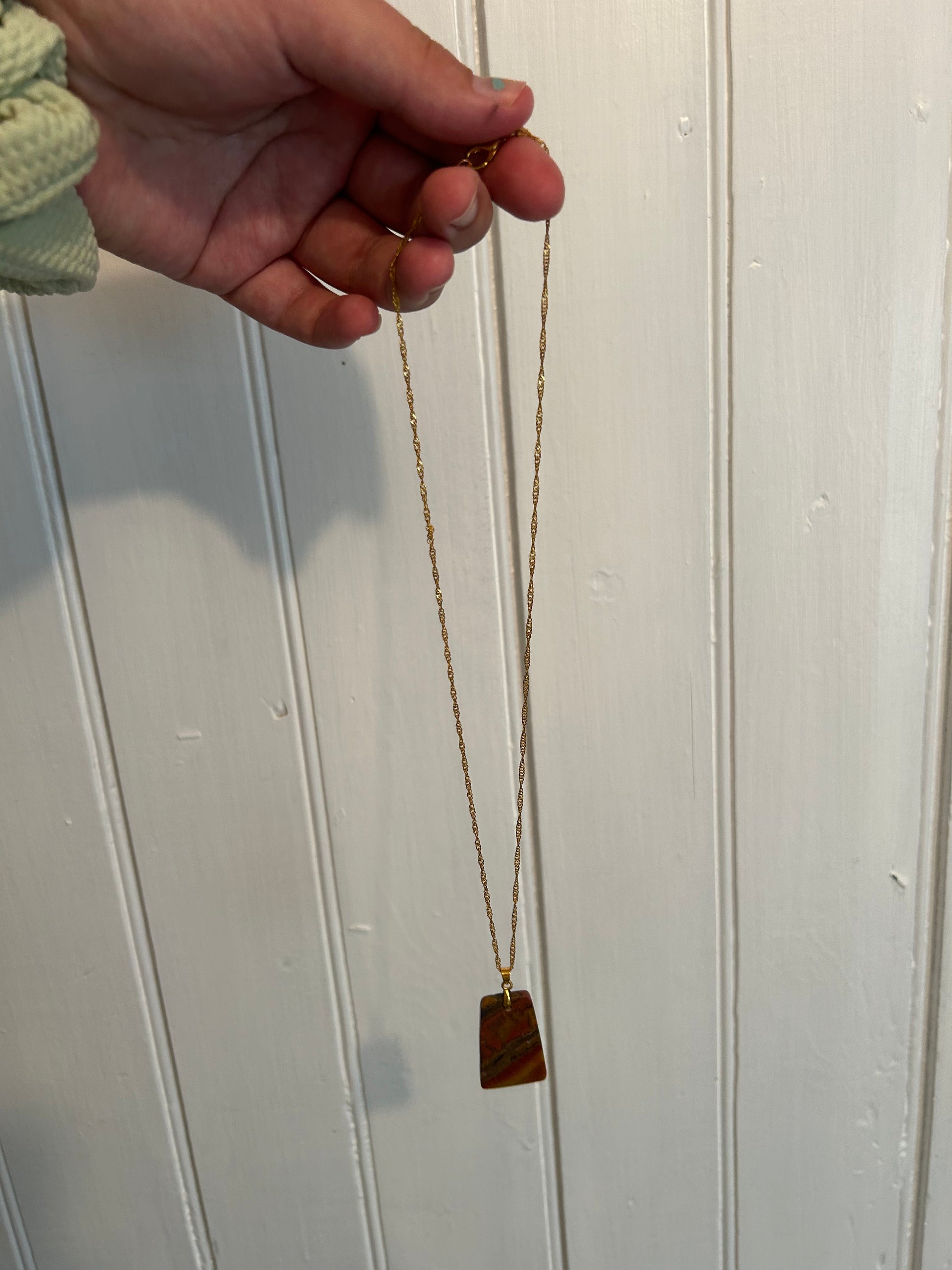 Handmade by local small shop, Kitty r designs. Brown rectangular gemstone pendant necklace. Brand new