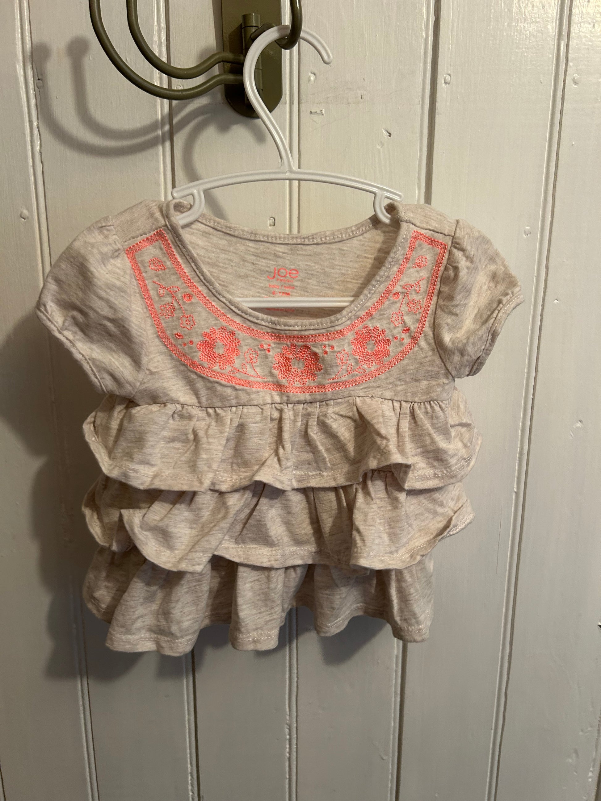 Joe fresh 6/12m tan & pink embroidered ruffle top