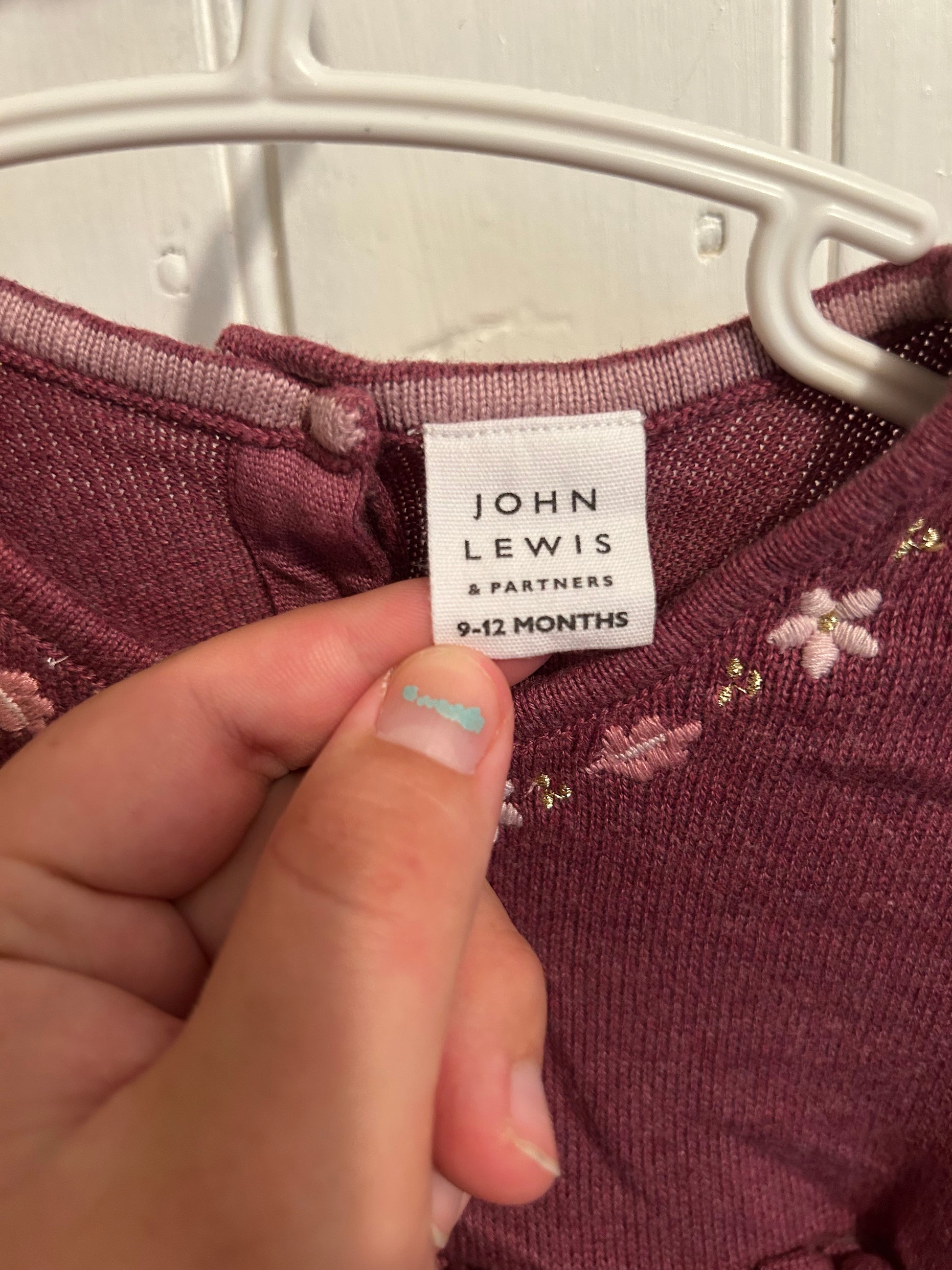 John Lewis brand. Long sleeve knit dress. Burgundy with floral embroidery neckline. Size 9/12m. Brand new conditionÂ