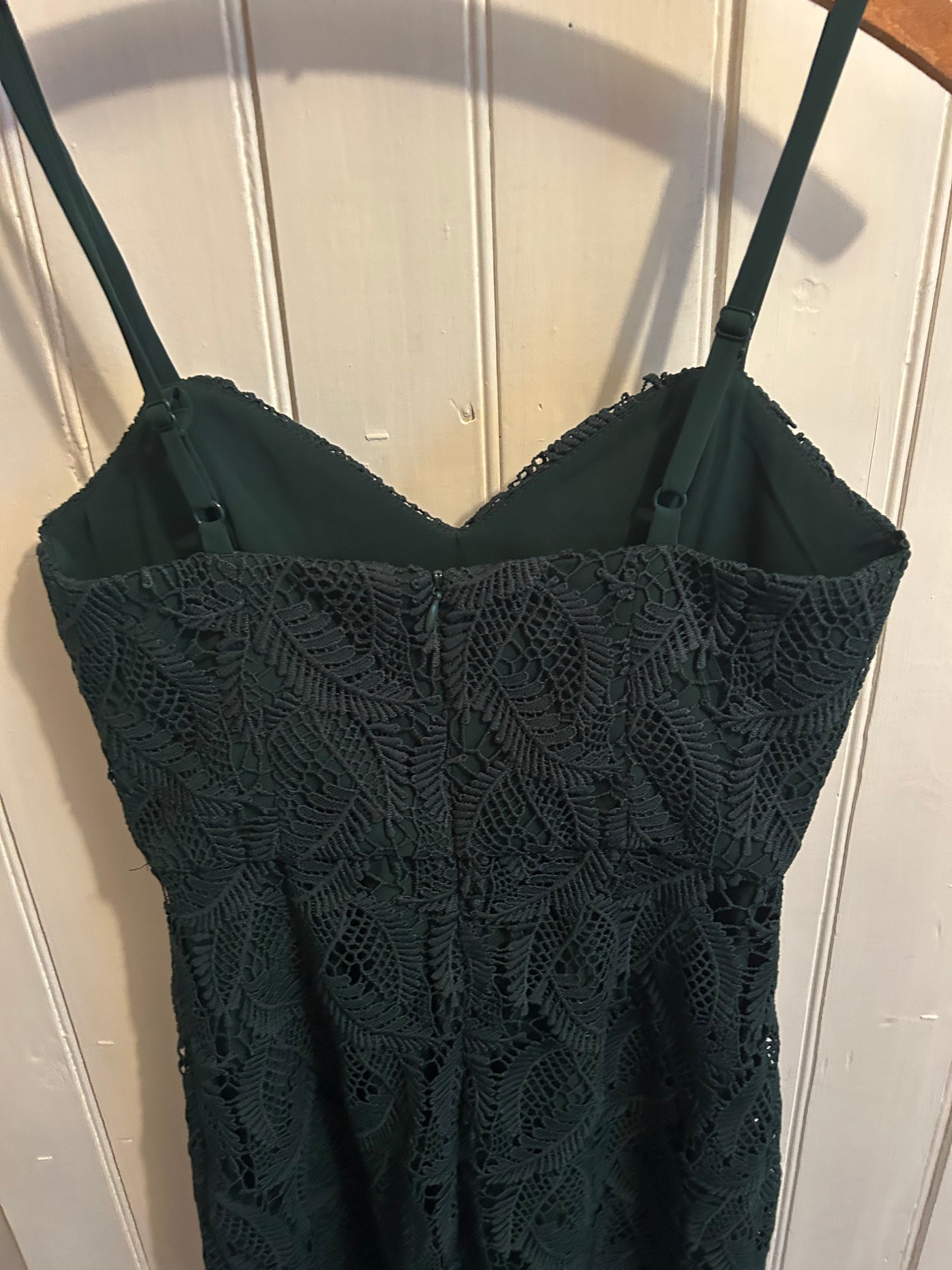 NEW RW&CO 0 dark green lace spaghetti strap midi dress