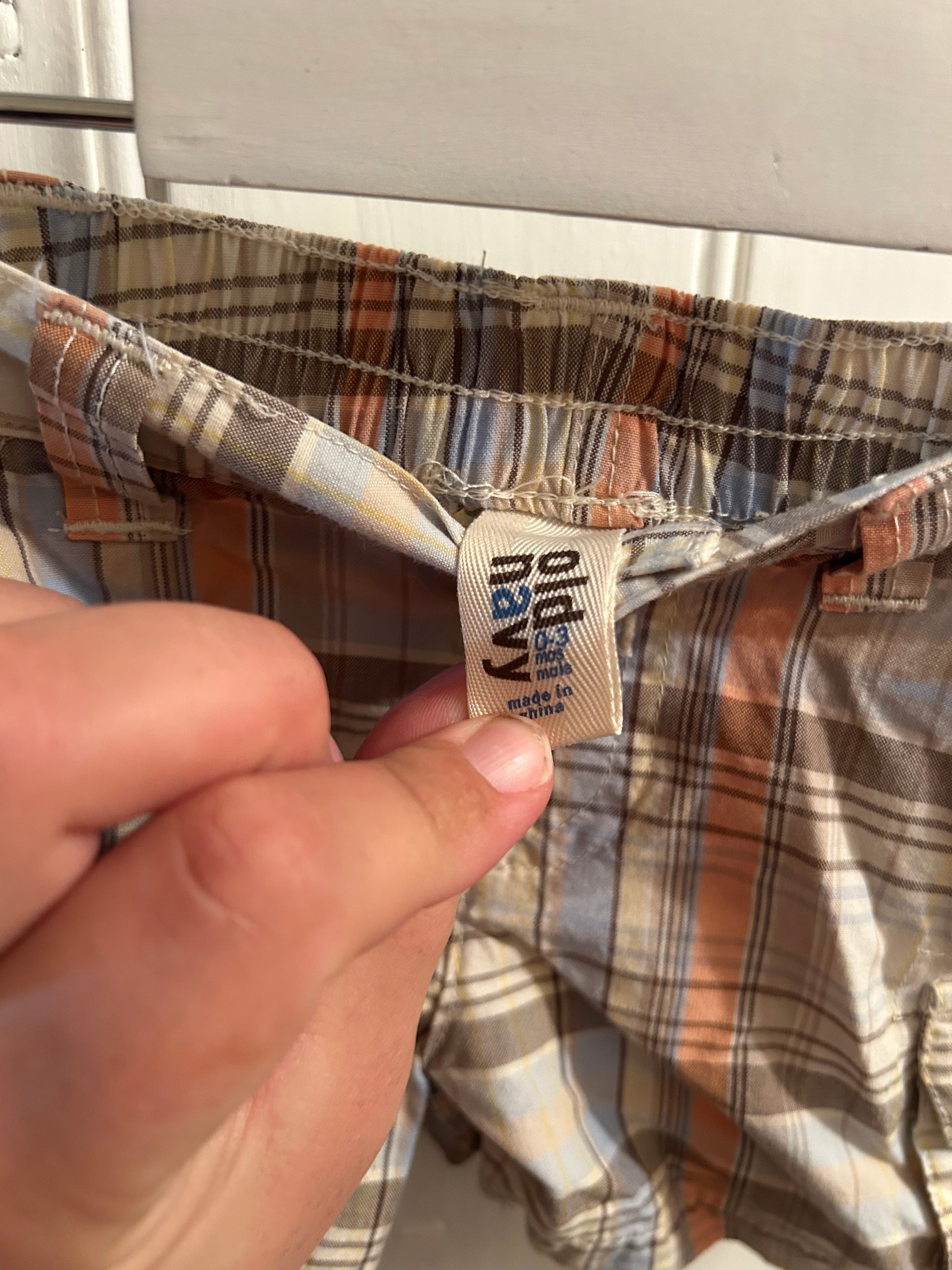 Old navy brand. Orange, blue & tan plaid shorts. Size 0/3m. Brand new conditionÂ