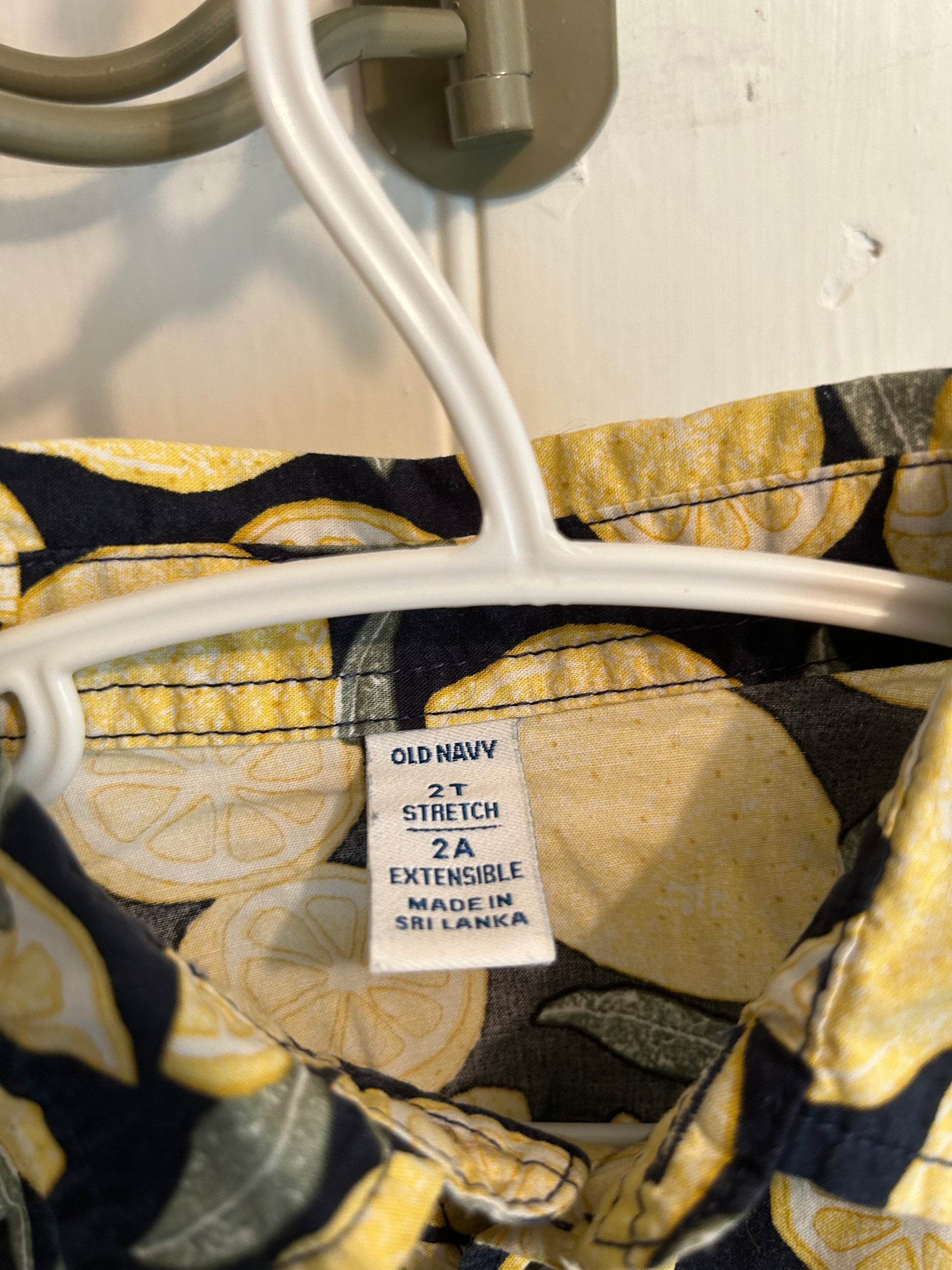 Old navy brand. Button up short sleeve shirt. Navy with yellow lemon print. Size 2t. Brand new conditionÂ