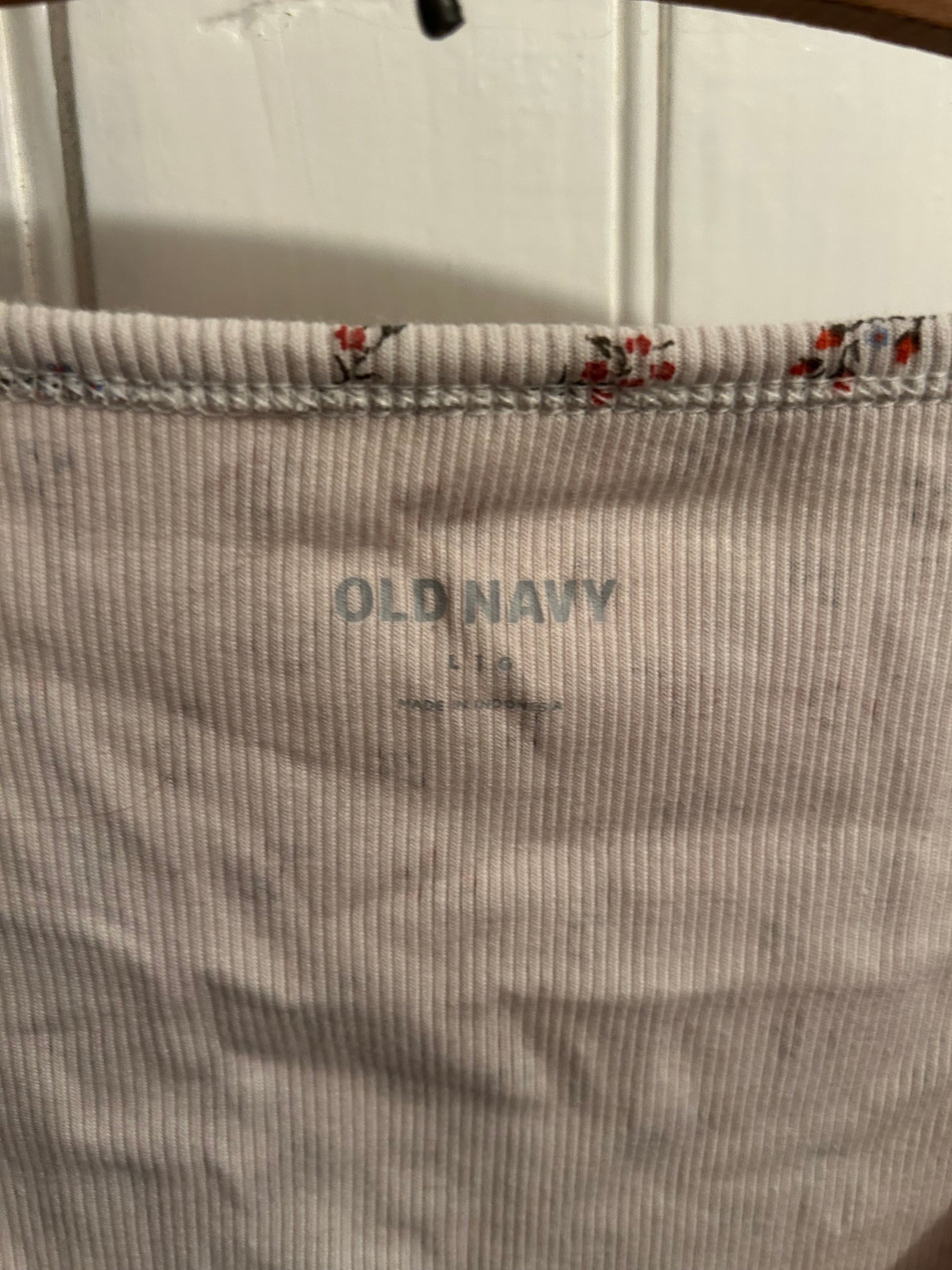 Old navy brand. Short sleeve round neckline faux button top. White with multicoloured floral print. Size large. Brand new condition