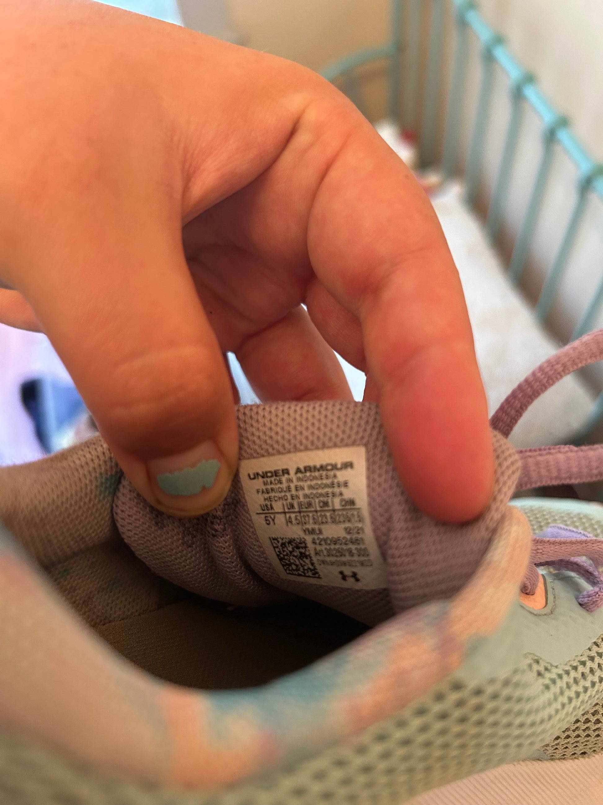 Under armour brand. Lace up runners. Light blue, pink & purple in colour. Size 5 youth. Brand new condition, couple faint marks.