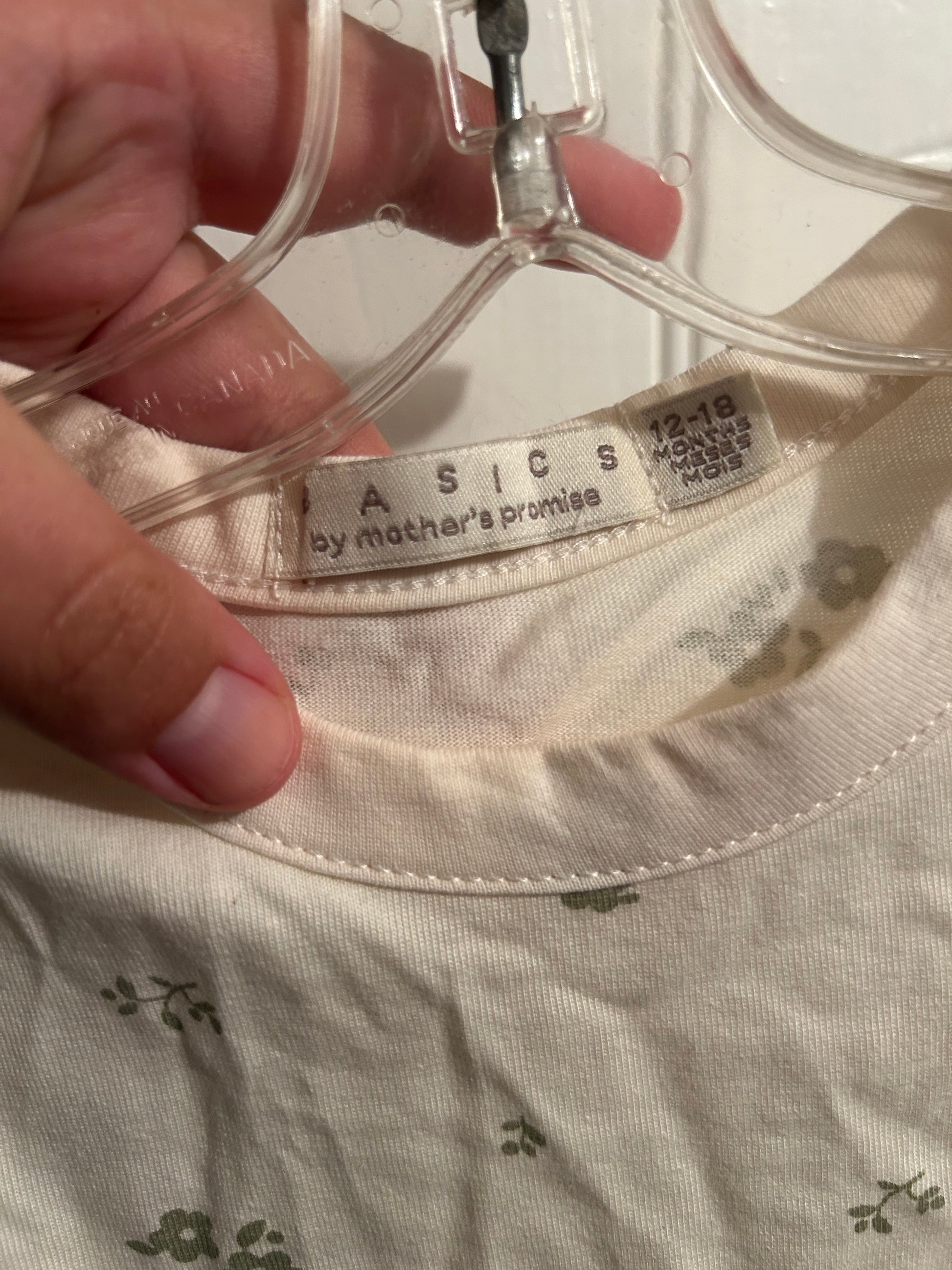 Basics brand. Short sleeve pants romper. White with green floral print. Size 12/18m. Brand new condition