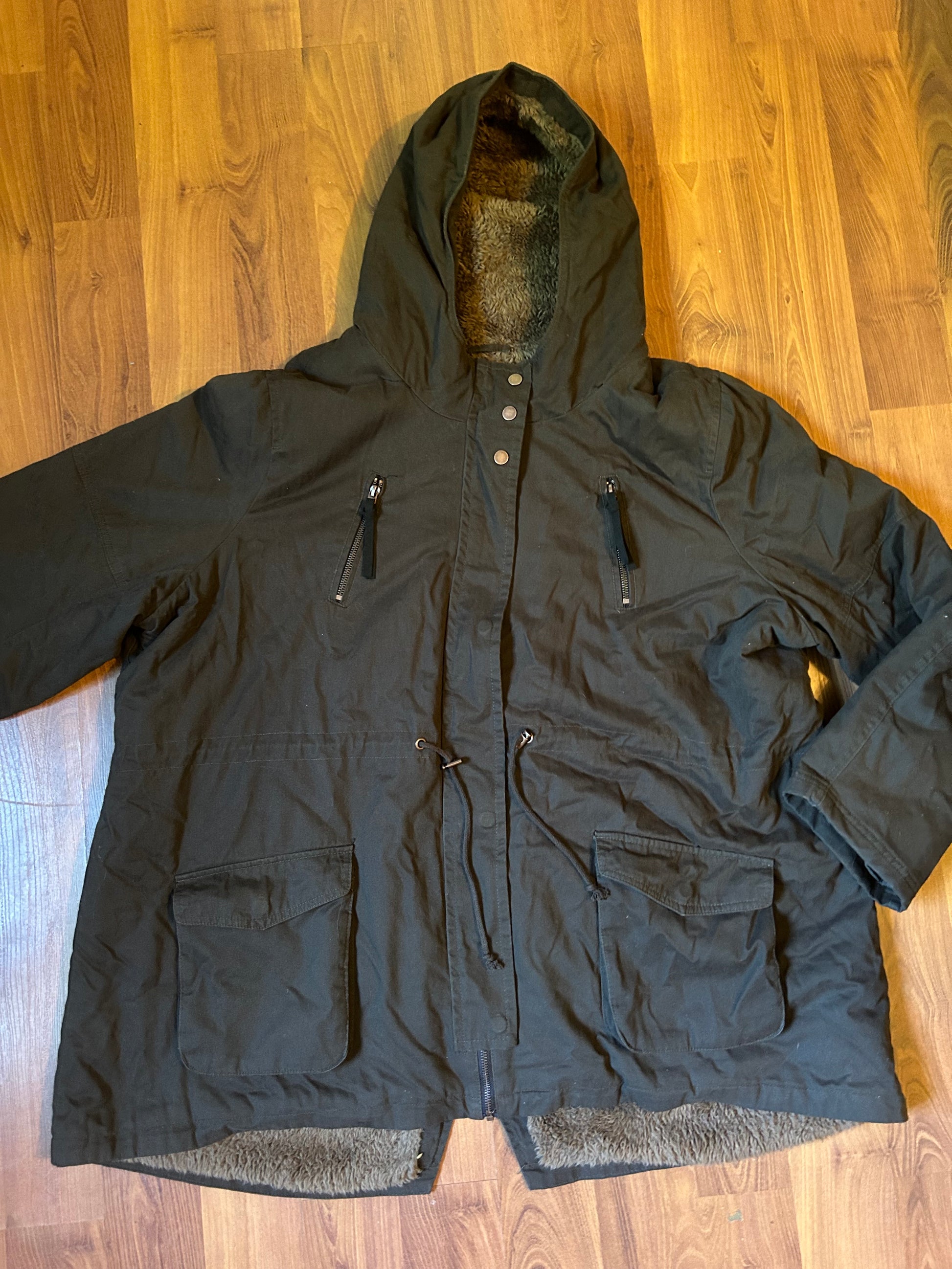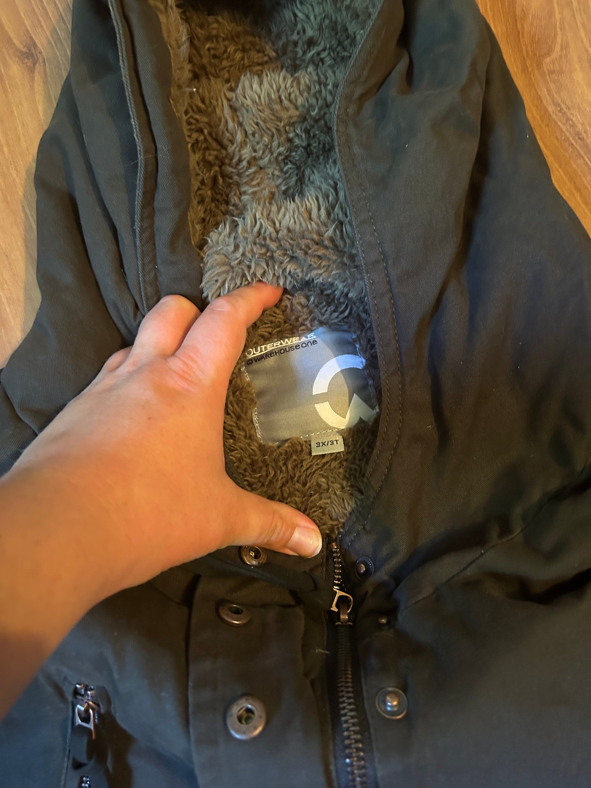 Warehouse one brand. Sherpa lined zip up heavy weight winter jacket. Not water resistant. Brown in colour. Size 3x. Brand new condition