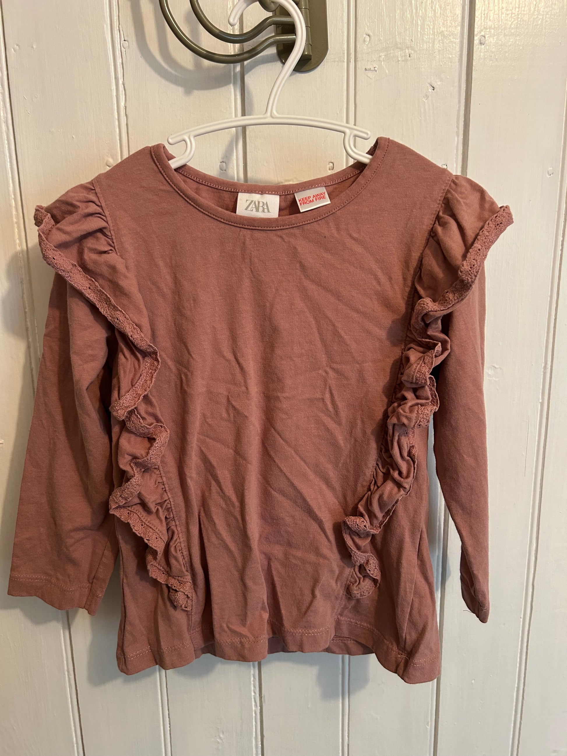 Zara brand. Long sleeve lace ruffle top. Pink in colour. Size 3/4t. Brand new conditionÂ